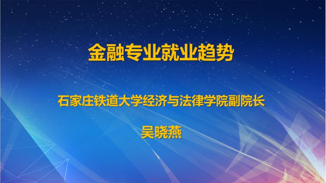 2022年12月26日下午2:00,石家庄铁道大学经济与法律学院副院长吴晓燕博士做了题为《金融专业就业趋势》的主题报告。她介绍了银行数字普惠金融的发展,为学生未来就业发展提供了方向与优化策略。