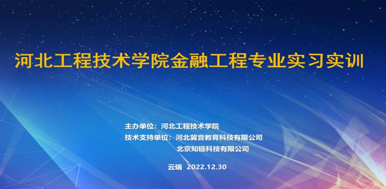 为深入贯彻党的二十大报告精神,落实《国务院关于加快发展现代职业教育的决定》要求,提升我系教育教学水平和人才培养质量真正实现产教融合校企合作,推动十大买球的正规网站金融工程系2023届毕业生实习工作顺利开展,2022年12月2612月30日,由十大买球的正规网站主办,河北冀音教育科技有限公司、北京知链科技有限公司承办十大买球的正规网站金融工程系协办的十大买球的正规网站金融工程专业实习实训在腾讯会议平台成功举办