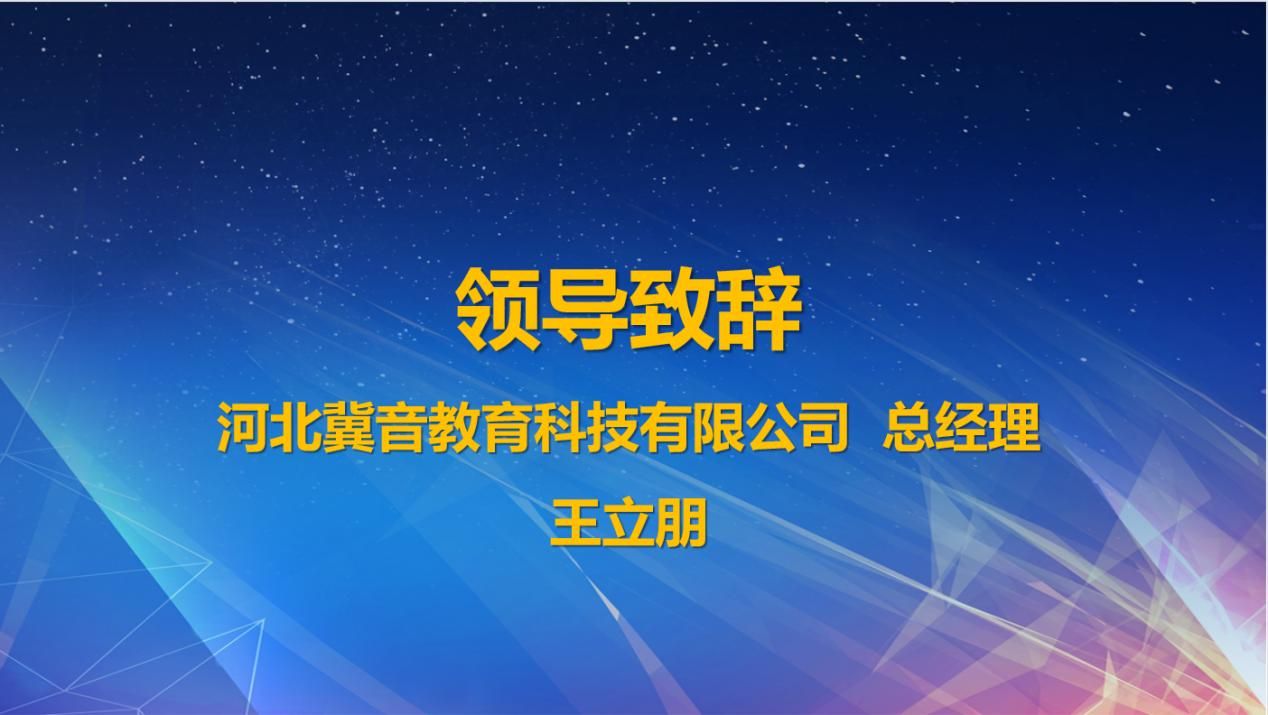 河北冀音教育科技有限公司王立朋总经理对莅临各位领导、老师和参训的同学们表示感谢,并对进一步深化产教融合,推进校企双元育人,不断提升应用型本科院校人才培养质量提出目标,希望通过搭建新型的产教融合模式,促进校企深度融合,赋能学生职场就业能力
