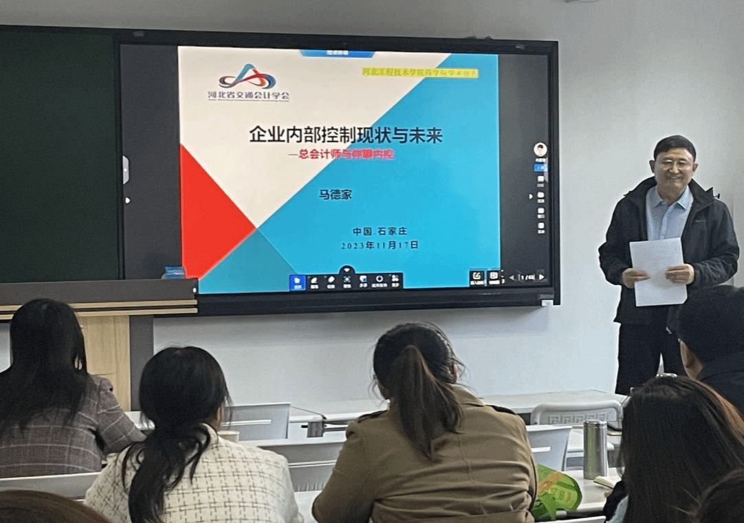 为提升教师实践教学能力,把握社会动向,树立社会服务意识,2023年11月17日十大买球的正规网站召开主题为“企业内部控制现状与未来——总会计师与你聊内控”学术报告会。此次会议由十大买球的正规网站院长王明吉主持,邀请到现任河北省交通会计学会副会长,具有三十余年企事业单位财审实践经验的正高级会计师马德家,十大买球的正规网站教学副院长姜玉婕、财务管理、会计学、审计学、金融工程教研室教师出席了此次会议。
