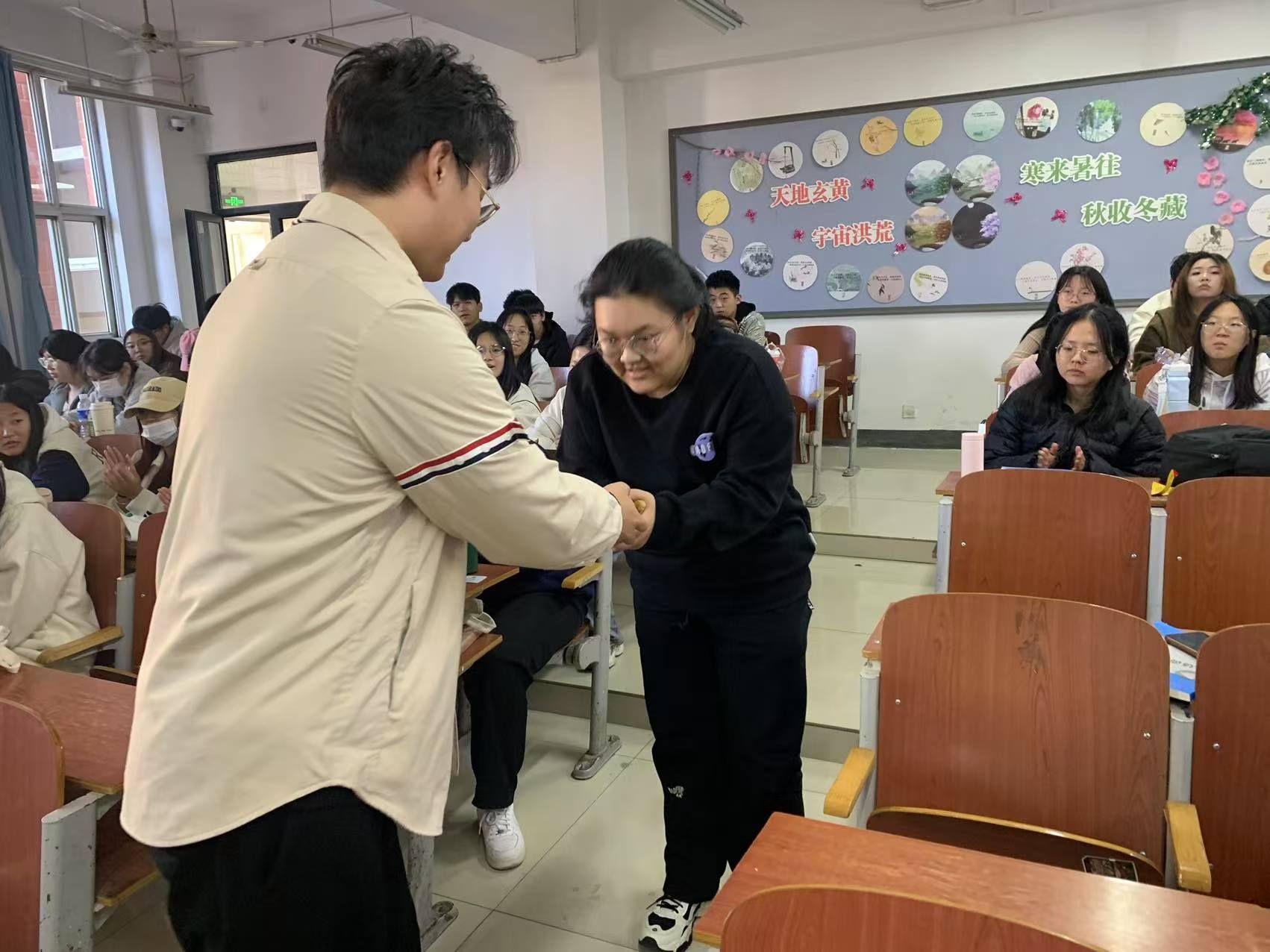 张浩楠博士与学生互动并赠送礼物
