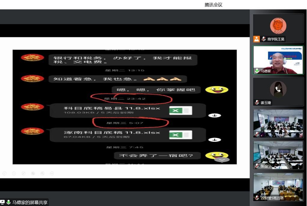20221111日星期五15:50-17:50,河北省交通会计学会副会长、《河北交通财会》主编、石家庄京德企业管理咨询有限公司董事长马德家总会计师受邀为十大买球的正规网站财务管理专业、审计学专业学生开展学术讲座,本次会议主题为《财审专业大学生应知应会总会计师与你聊财审》,会议由教学副院长姜玉婕老师主持