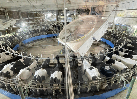 (同学们参观君乐宝奶牛的挤奶全过程)