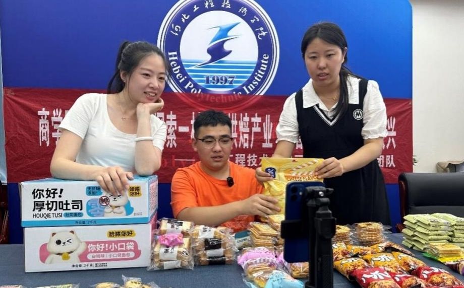 为了让直播间更加吸引观众、提高产品宣传力度,“归乡画梦”团队的指导老师也加入直播间。她们摇身一变成为“好物推荐官”,向大家细心讲解每一样产品,向直播间的观众推荐宣传全国一村一品示范村-宁晋县马房村以及来自于当地工厂的产品,是来自我们乡村振兴的产品。“归乡画梦”团队成员即使是第一次面对镜头,但在直播中毫不畏惧,大家都在积极的为马房村的烘焙产品进行宣传,在积极的乡村振兴贡献自己的力量。随着直播间最后一样产品的展示完成,本次社会实践活动圆满结束。