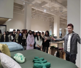 李经理给大家介绍了纺织史的重要节点,在公司的展厅向师生介绍了公司的主要产品,包括满足不同客户需求的床品,卫浴用品,户外产品,时尚包包等。学生可以触摸感受商品的品质。