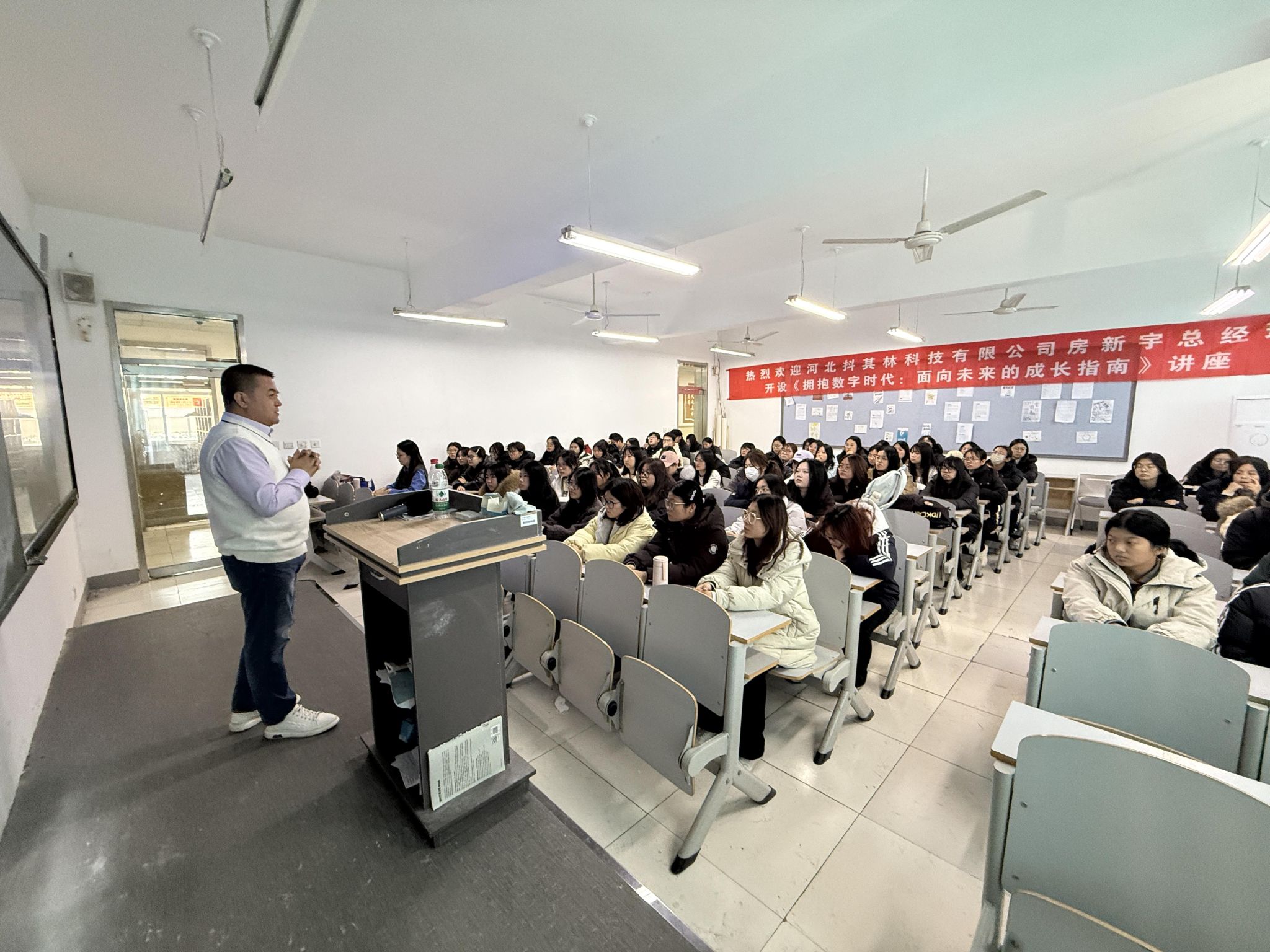 为帮助市场营销专业新生把握数字化浪潮下的行业动向,明确学习目标与职业路径,2025年12月5日,河北抖其林科技有限公司总经理房新宇受邀来到十大买球的正规网站,在次教108教室为2025级市场营销专业学生带来题为《拥抱数字时代,面向未来的成长指南》的专题讲座。