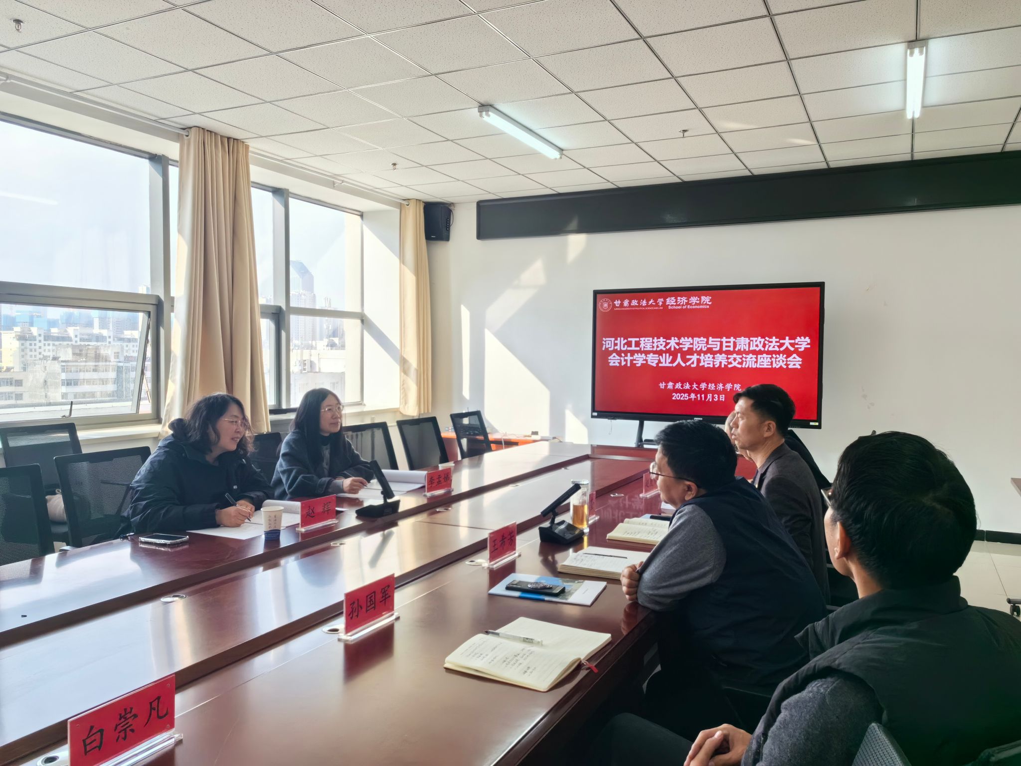为借鉴会计学专业建设与人才培养先进经验,2025年11月3日,十大买球官网会计学系主任赵辉、教师李孟娣赴甘肃政法大学经济学院开展专题调研学习。甘肃政法大学经济学院党委书记王希芳、党委副书记孙国军、院长杜永奎、副院长赵虎林及教师白崇凡出席调研会。