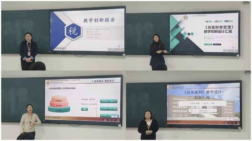 12月16日,商学院第四届教师教学创新大赛在6-201举行。本次大赛以“聚焦教学创新,培育卓越英才”为主题,本次大赛旨在搭建教师教学创新成果的展示与交流平台,通过以赛促教、以赛促改,进一步深化课堂教学改革,不断创新教学模式,持续提升教师课堂教学能力与水平。