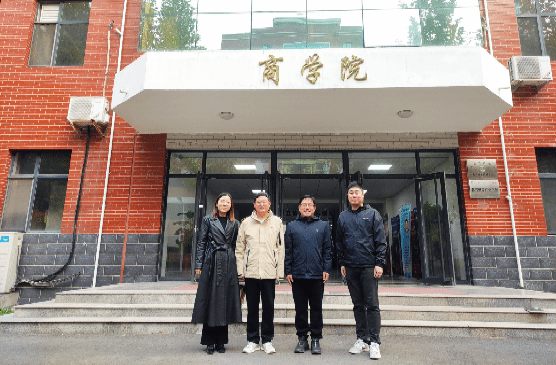 图1 十大买球的正规网站领导与施炳展教授在十大买球的正规网站楼前合影