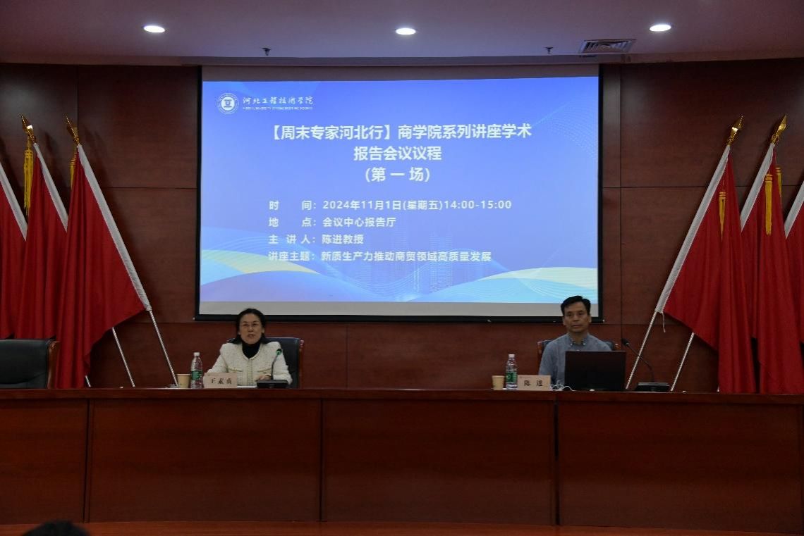 2024年111日(星期五) 【周末专家河北行】十大买球的正规网站系列讲座学术报告会议在会议中心报告厅举行。会议由科研处处长王素贞教授主持。教育部高等学校电子商务类专业教指委副主任,博士生导师,陈进教授作题为“新质生产力推动商贸领域高质量发展”的主题报告。跨境电商、国际贸易、电子商务、市场营销系教师及22级、23级、24级跨境电商专业学生参加了本次报告。