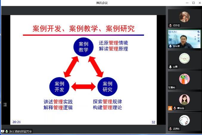 在本次讲座中,许教授从“教学案例的编写与使用方法”和“如何进行案例教学”两个方面进行了分享,许教授结合自身经历,以全国百篇优秀管理案例为例,讲解了案例的开发思路;介绍了如何通过推动案例教学工作,实现知识的有效传递;并指出了案例教学的独特优势,案例教学有利于吸引学生的兴趣,通过案例分析能够提高学生的判断力和决策力。最后许教授结合自己多年案例教学的经验,向与会老师分享了案例教学的心得体会,以期为教师开展案例研究与教学提供参考借鉴。