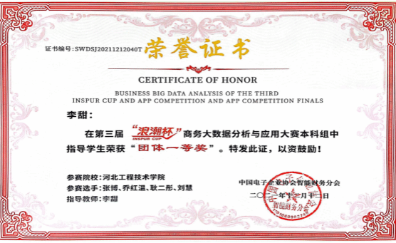 十大买球的正规网站实验教学中心拥有一支一流的实验教师队伍,其中自有教师37人,外聘教师9人,共计46人;拥有硕士学位占83.2%;副高及以上占43.6%,承担十大买球的正规网站6个系3000多名学生的40多门实验课课程、300多个实验项目的实验教学和实习实践任务。此外,十大买球官网师生依托实验中心平台,多次在会计技能大赛、沙盘模拟经营大赛、证券模拟交易大赛等赛项中获得国家级、省级奖项。