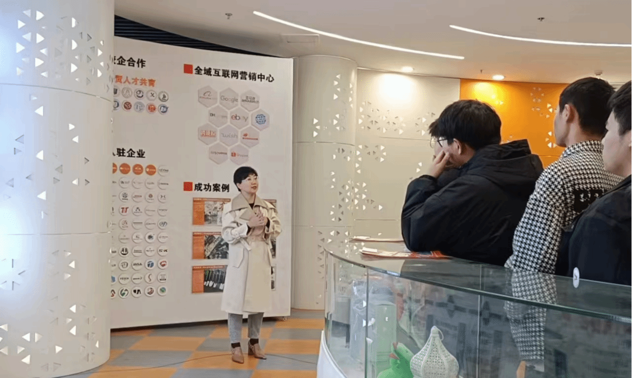 河北跨海商务信息技术有限公司致力于打造全球性的电商平台,为消费者提供多元化的商品选择和智能化的购物体验。在参观过程中,企业负责人介绍了公司发展历程、规模现状和用工需求情况,带领学生们实地参观了企业工作场所、产品展示区,且结合公司业务为学生们全面介绍了跨境电子商务的发展趋势和未来前景。