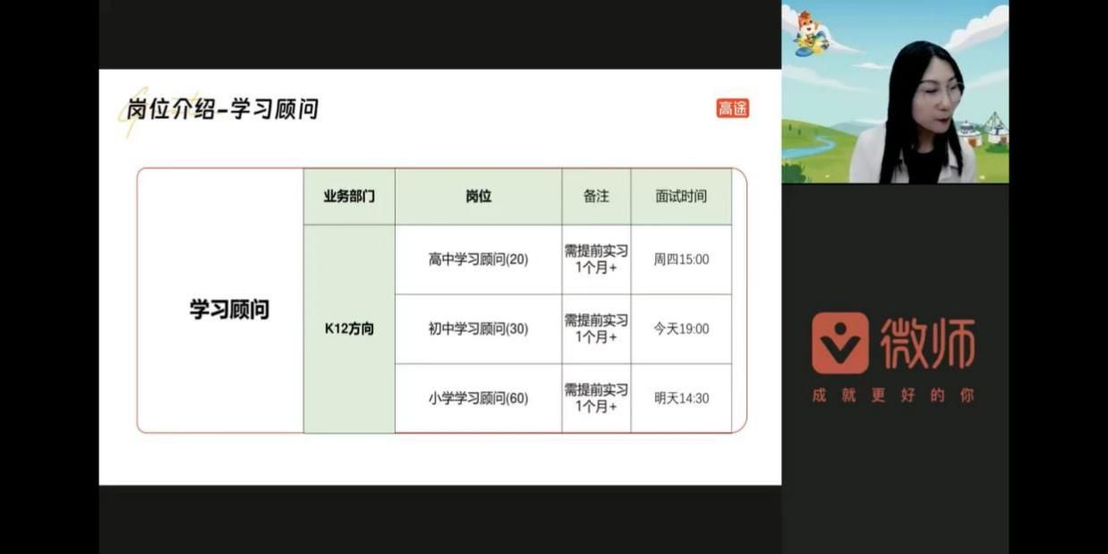 高途科技教育公司将通过线上宣讲会的形式帮助十大买球的正规网站毕业生多渠道就业创业,并提供详细的职业发展路径和培训机会,让十大买球的正规网站毕业生清晰的看到自己在公司未来的成长空间。公司承诺做好高校毕业生就业指导和服务保障,持续推进十大买球的正规网站毕业生与公司单位精准供需对接,拓宽毕业生高质量就业渠道,多措并举促进毕业生更充分、更高质量就业。