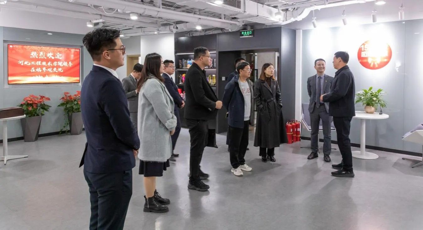 在企业总部招聘团队经理的陪同下,常书记一行实地参观了企业的工作环境和企业文化。公司负责人详细介绍了公司业务范围、人才需求等基本情况。校企双方围绕人才培养模式、实习就业基地建设、招聘情况等议题展开热烈讨论。