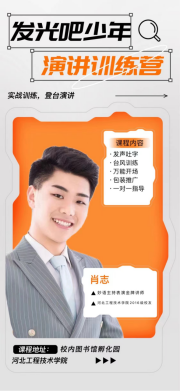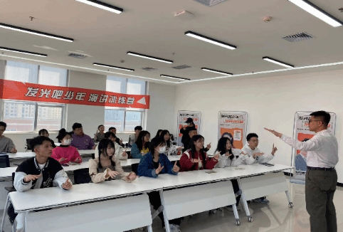 为了让更多的人了解到演讲的魅力,为了对“发光吧少年”在校生团队有针对性的训练演讲,“发光吧少年”项目组特意邀请了爱德思培训学校主持培训教师肖志老师于2023年3月27日图书馆508研修室举办了演讲与表达讲解课程。
