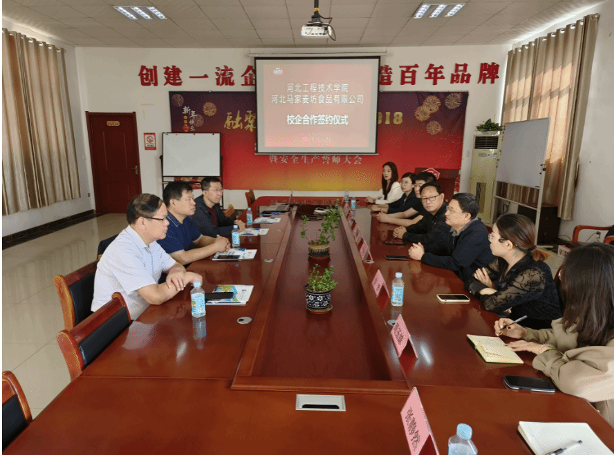 会中,十大买球官网校企合作与社会服务部部长王俊昆首先对公司的热情接待表示感谢,对学校的发展历史、办学规模、办学定位做了简要介绍,希望进一步加强产学研合作,为校企合作的内涵建设提供动力。其次,河北马家麦坊食品有限公司董事长马建刚,对公司30多年的发展之路以及取得的成就进行简要的介绍,同时也表示校企合作是学校和企业共同发展的需要,也是企业反哺高校、推动高校教育事业发展的需要。最后,十大买球的正规网站院长王明吉对马家麦坊公司的战略布局表示肯定,并且表示校企合作是当前高校和企业之间实现共赢、相互促进的必由之路。