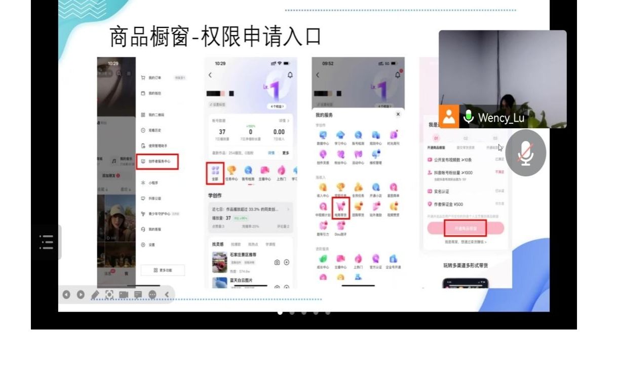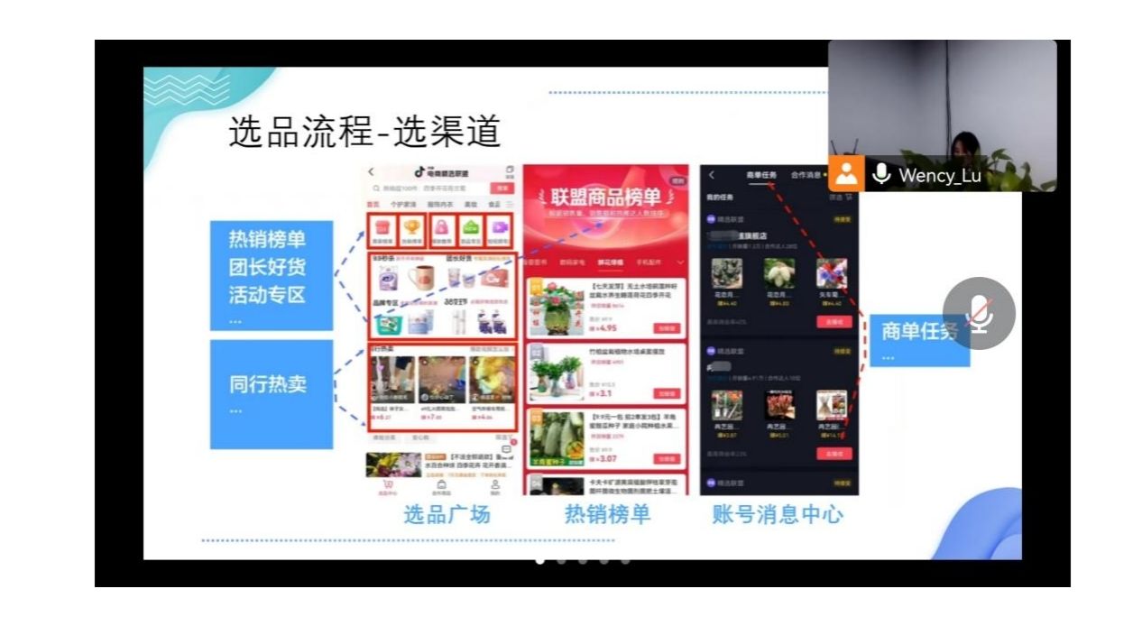 首先,路老师为我们介绍了玩转精选联盟的内容,主要为商品橱窗开通链路、新手达人如何入驻精选联盟、达人账号信息完善设置和新手达人选品技巧四个板块。