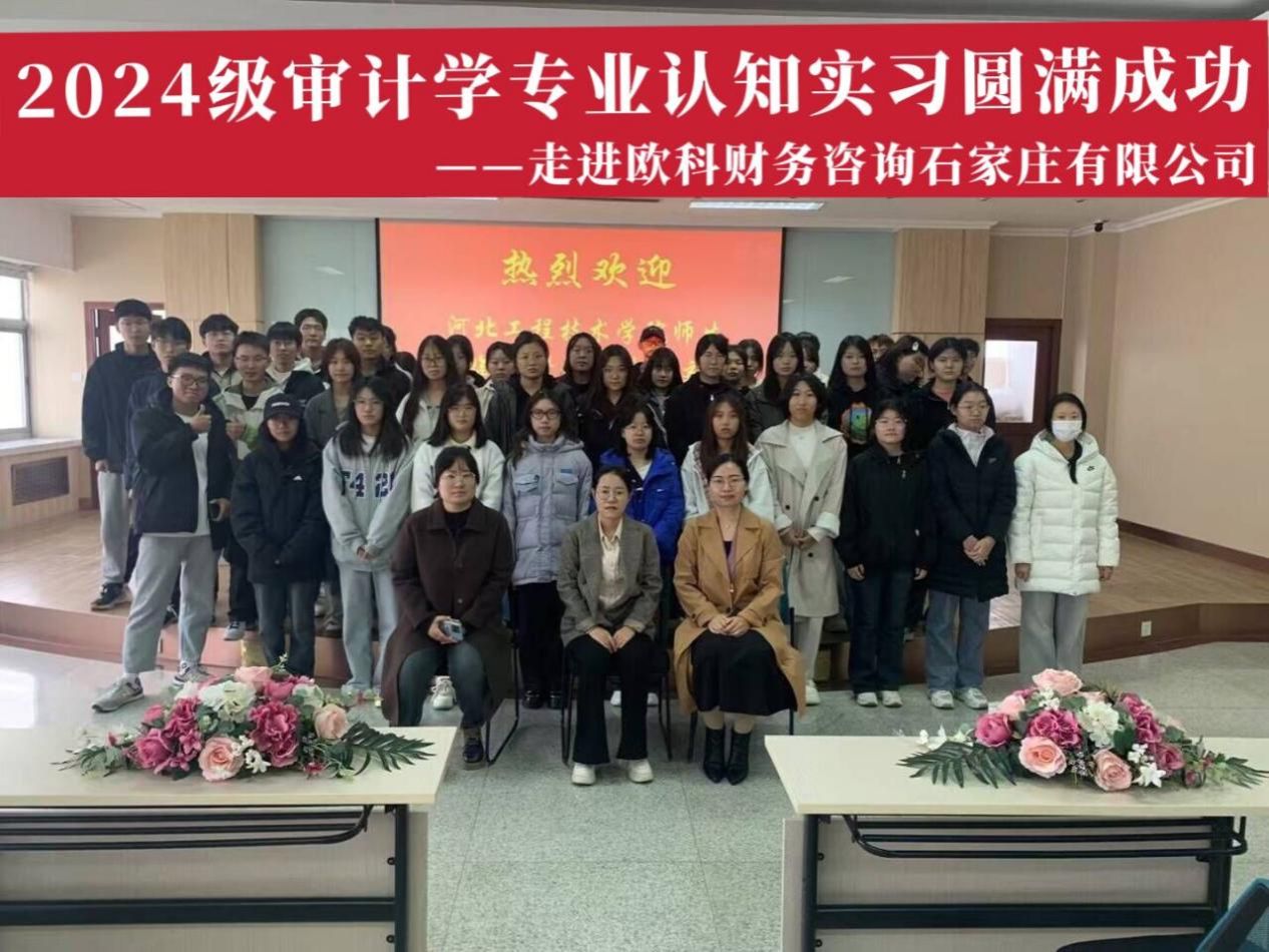 2024年11月9日,商学院的审计学专业学生们前往欧科财务咨询石家庄有限公司进行认知实习。此次实习旨在增强学生的专业认知,提升实践技能,为未来职业生涯奠定坚实基础。